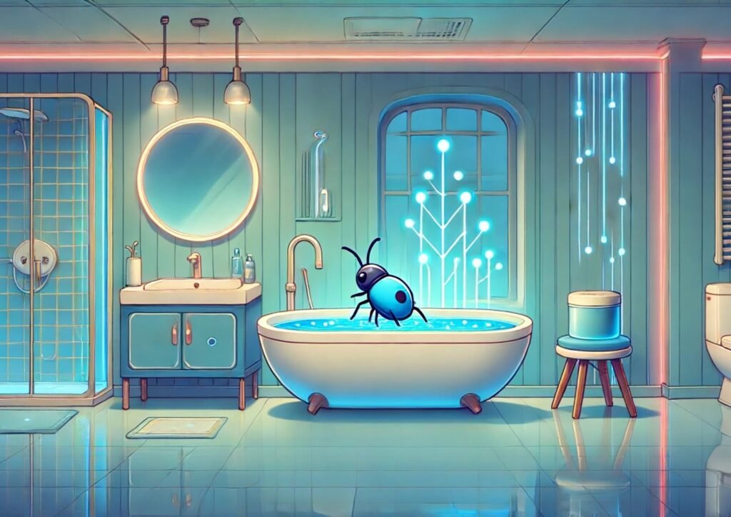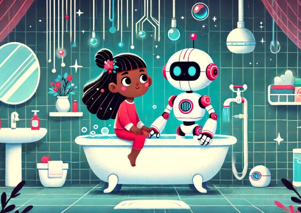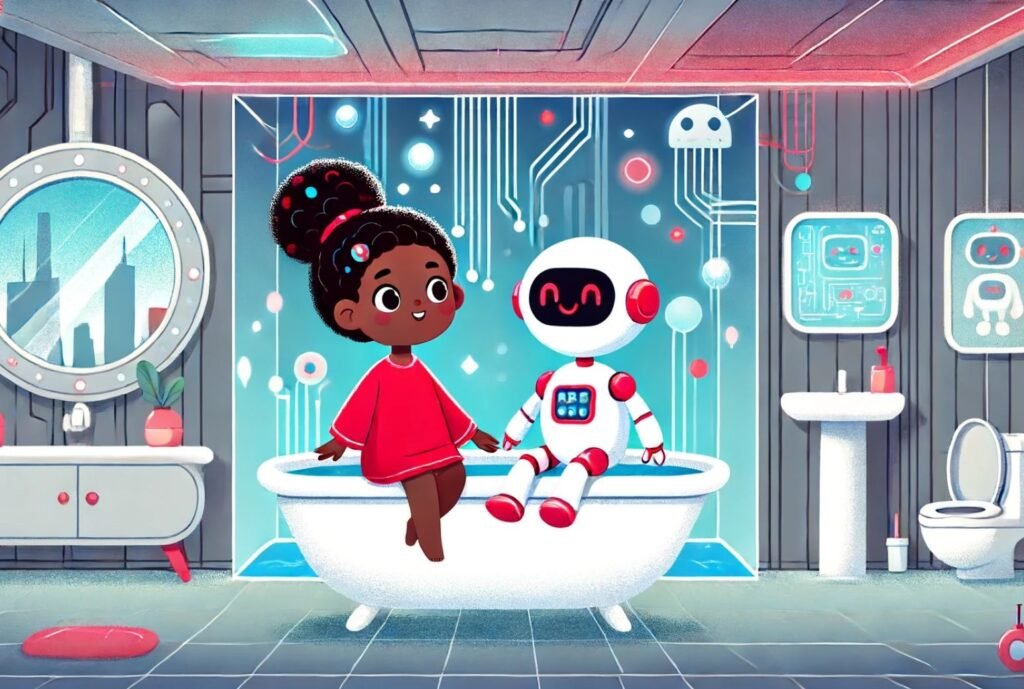 Beth sat in the tub. The bot sat too.